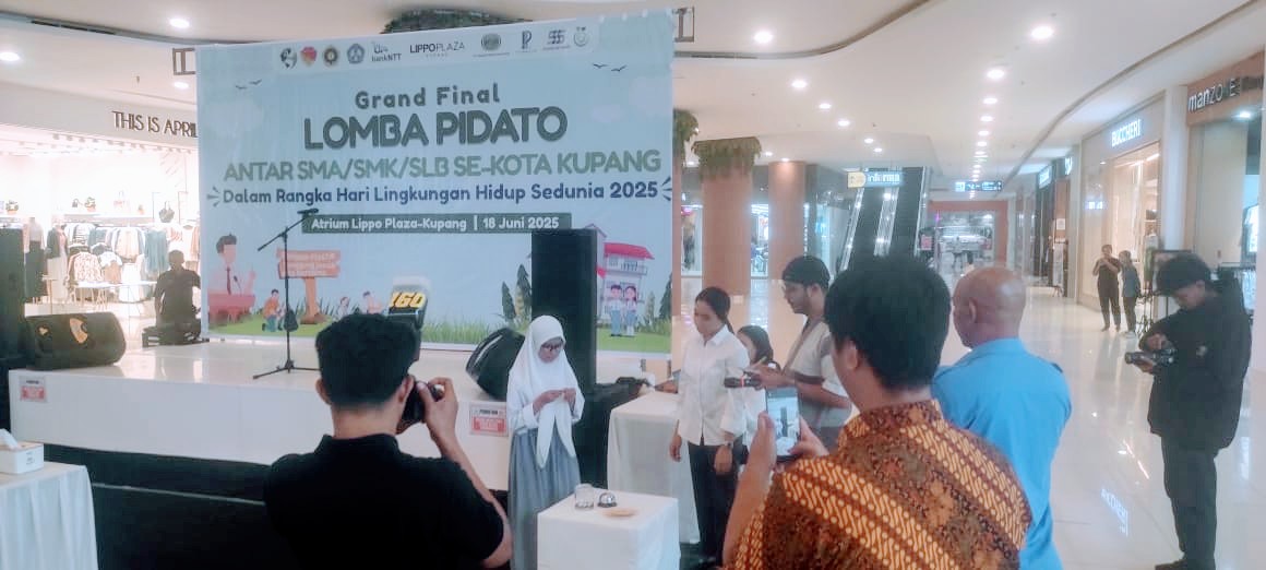 Grand final lomba pidato hari lingkungan hidup sedunia diselenggarakan di Atrium Lippo Plaza pukul 16.30 WITA sampai selesai, dengan perwakilan dari SMAN 10 Kupang, Sri Muliyanti dengan no urut-2, tampil sebagai salah satu dari 10 grand finalis terbaik.