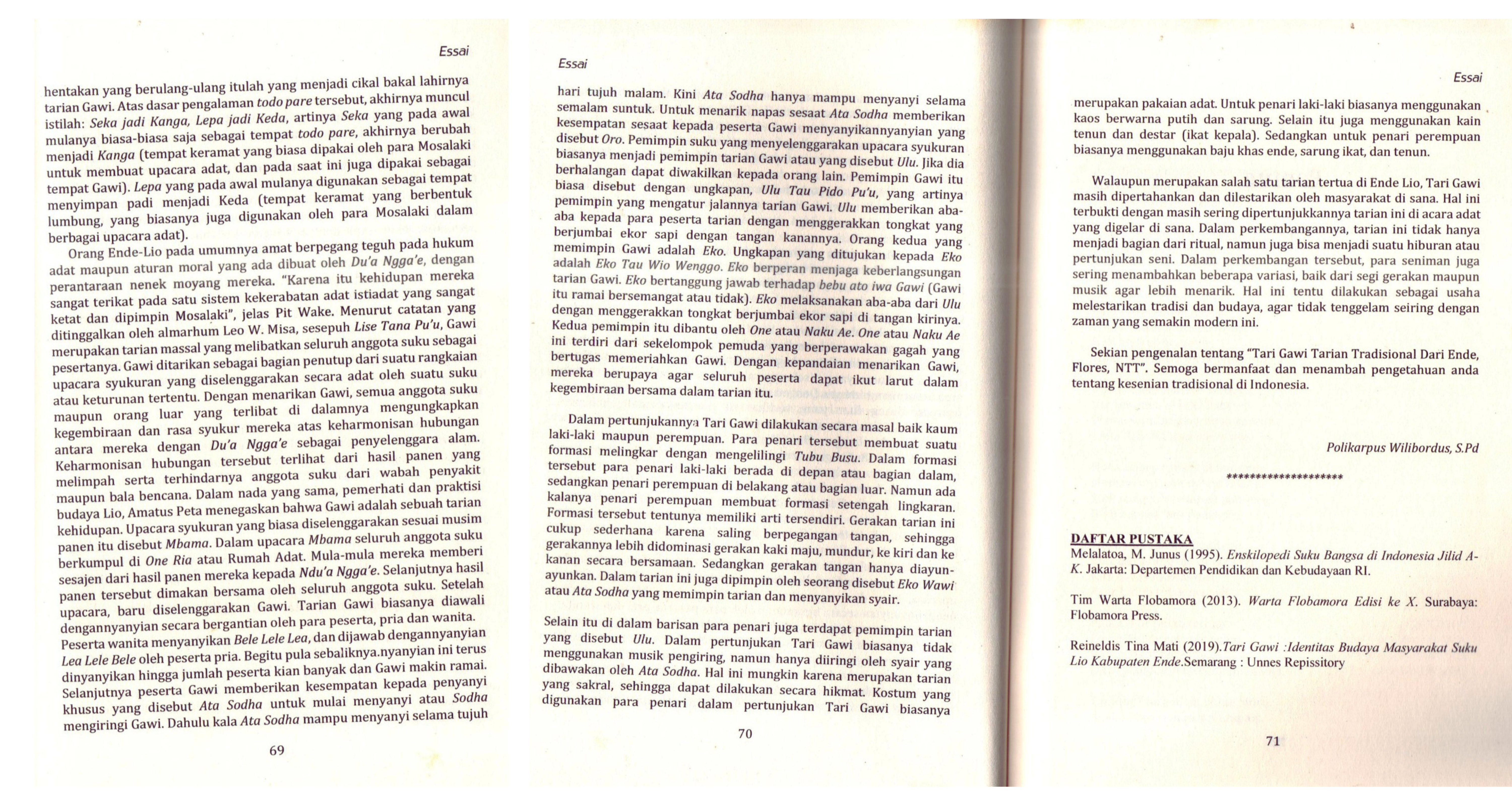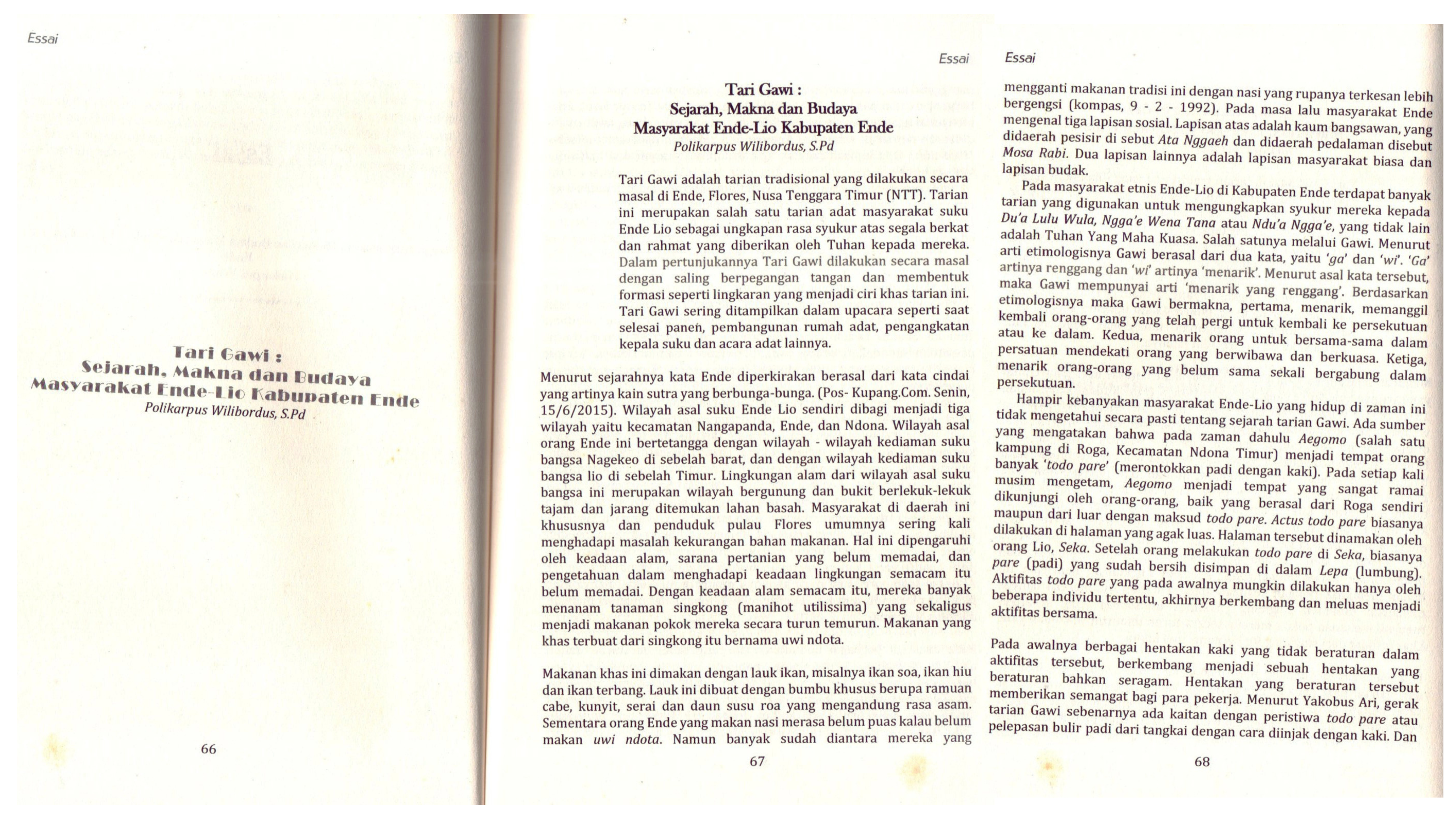 Tari Gawi : Sejarah,Makna dan Budaya Masyarakat Ende-Lio Kabupaten Ende (Buku Tanah Langit NTT Tahun 2021 Penerbit Garudhawaca dengan ISBN : 9786236521632)